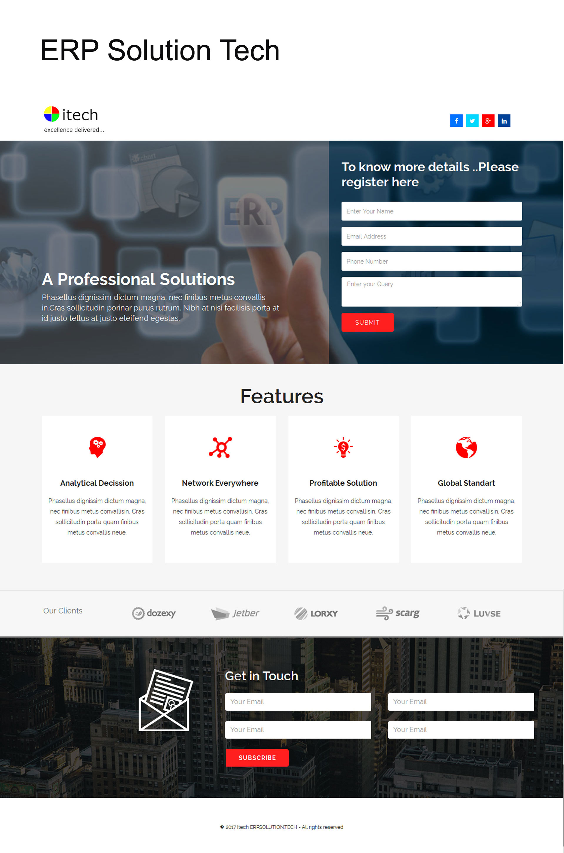 erpsolution.tech Landing page is developed by Itech solutions.